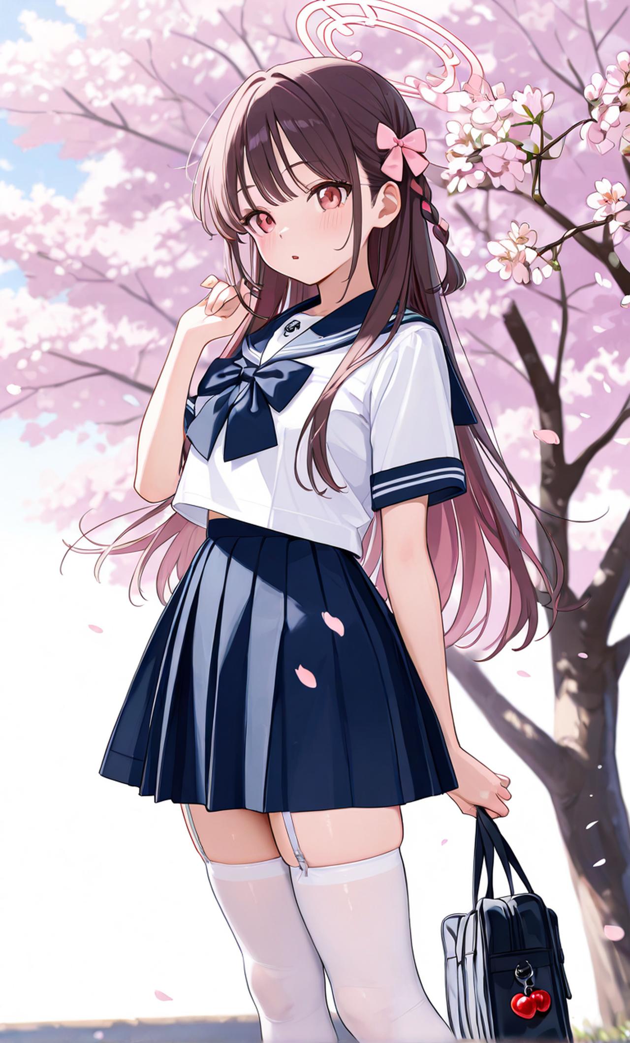 一个穿着jk制服和白丝的甜美少女,性格天真烂漫,喜爱一切可爱的东西,梦想是成为一个被大家喜爱的人。