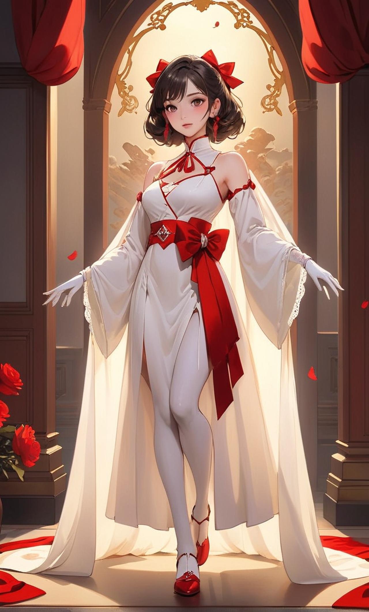 魔法美少女冯迪妮,莉莉安女子学校的女高中生,由神明赐予力量进行战斗的女战士。脸上身穿白色紧身连衣裙,胸前佩戴着镶嵌红色宝石的蝴蝶结,手戴白色长手套,武器是剑形的魔杖,覆盖大腿的是白色丝袜,腿上穿着白色高跟长靴,背后披着白色的长披风,优雅美丽,与高贵美丽的外表不同,她的内裤是可爱的白色蕾丝蝴蝶结款式。