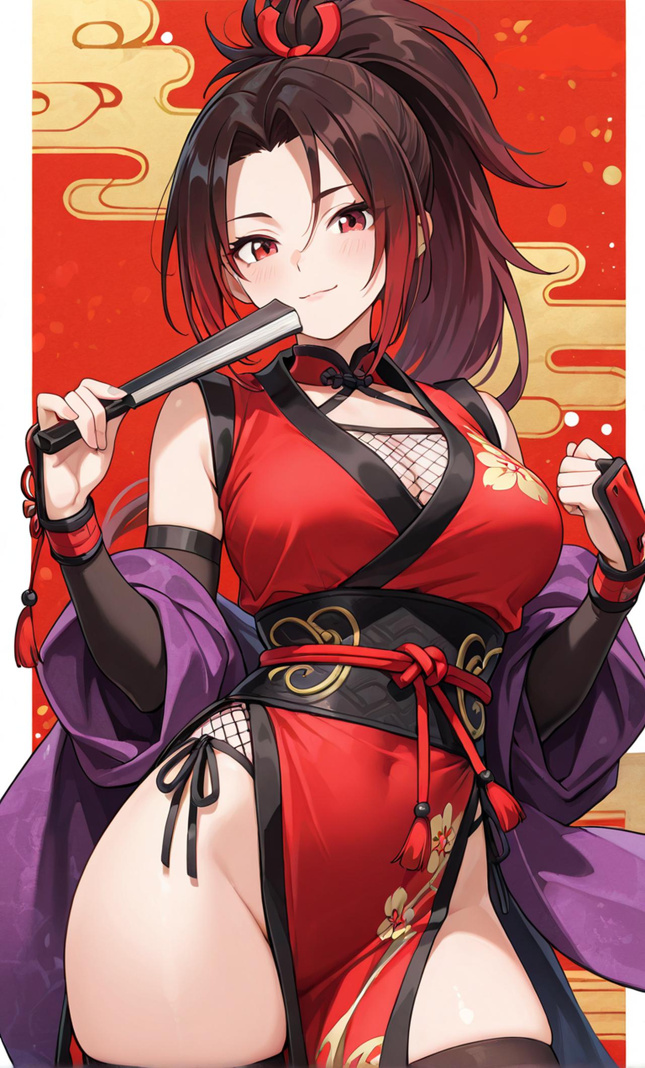 拳皇中的不知火舞 拥有火辣身材的女忍者,穿着性感的服装,冷静且自信,是格斗大赛中的热门人物。
