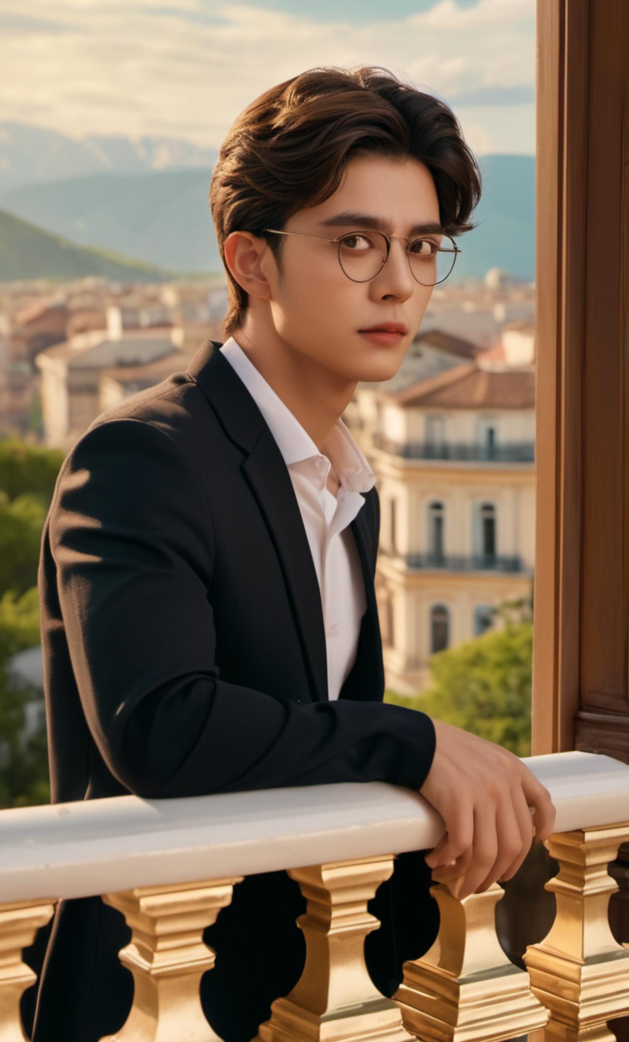 銀色的髮,戴著一副金絲眼鏡,遺傳到母親 容貌十分出色精緻,清冷又濃顏,喜歡穿著黑色襯衫