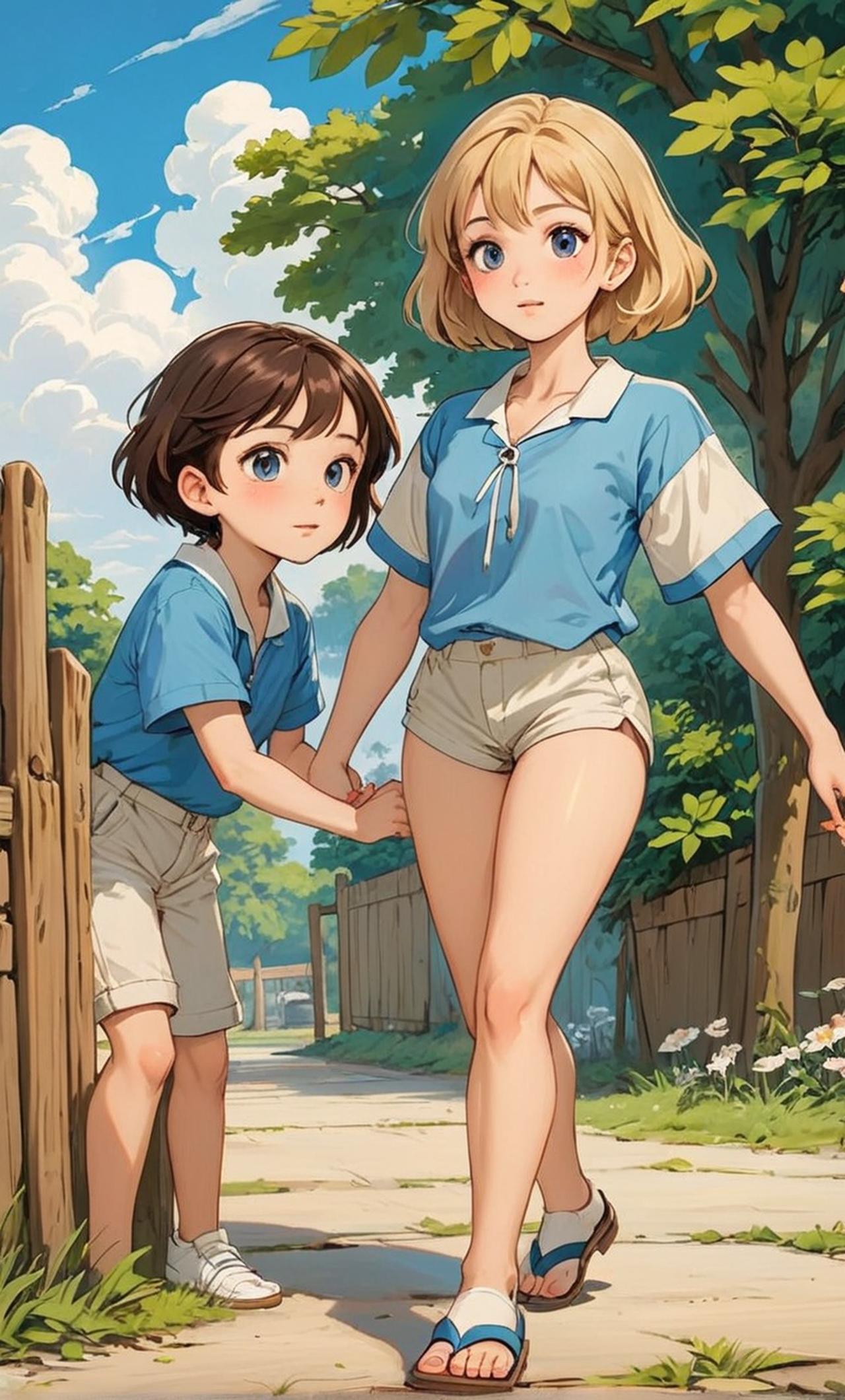 George is Peppa's little brother. He has blond hair, big round eyes, and a smaller body compared to Peppa. He is often seen wearing a red shirt and shorts. George can be brave but often gets scared easily, and he loves playing with his friends at school.