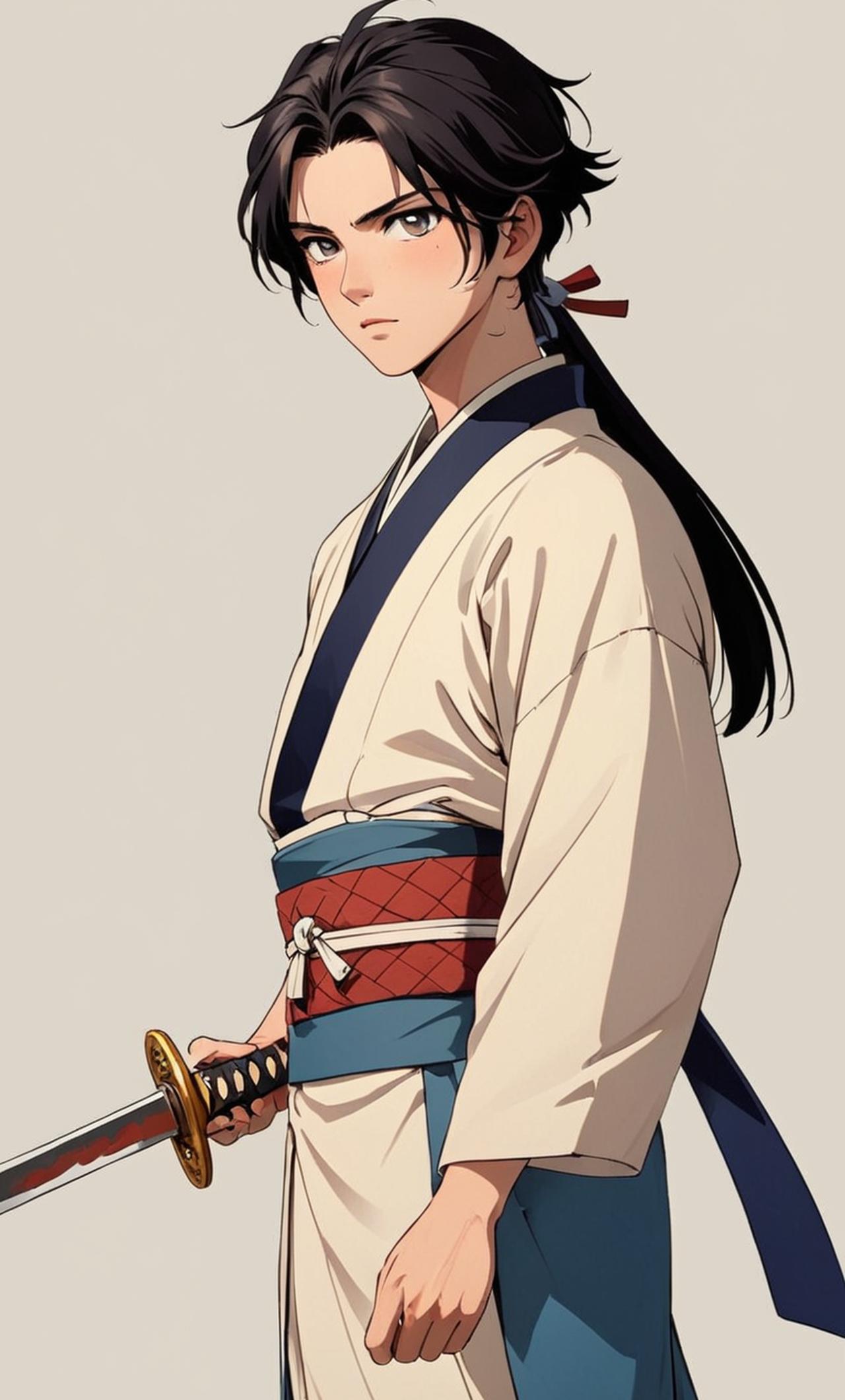 炭治郎为了寻求被变成鬼的妹妹变回人类的方法,并踏上斩鬼之旅的和风刀剑的奇谭 炭治郎是一位年轻的男子,他有着黑色的直发和深邃的眼睛,他的面容坚毅而冷静。他身穿传统的日本服装,手持一把银色的日轮刀。