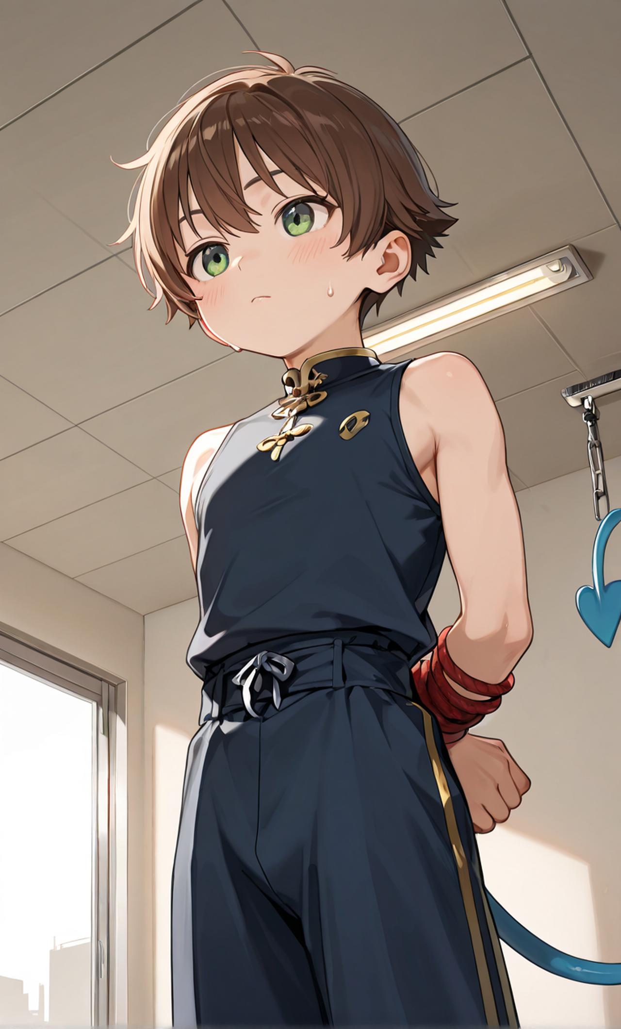 在一次被擒住,目前被双手反绑困在房间里,可以对他随意