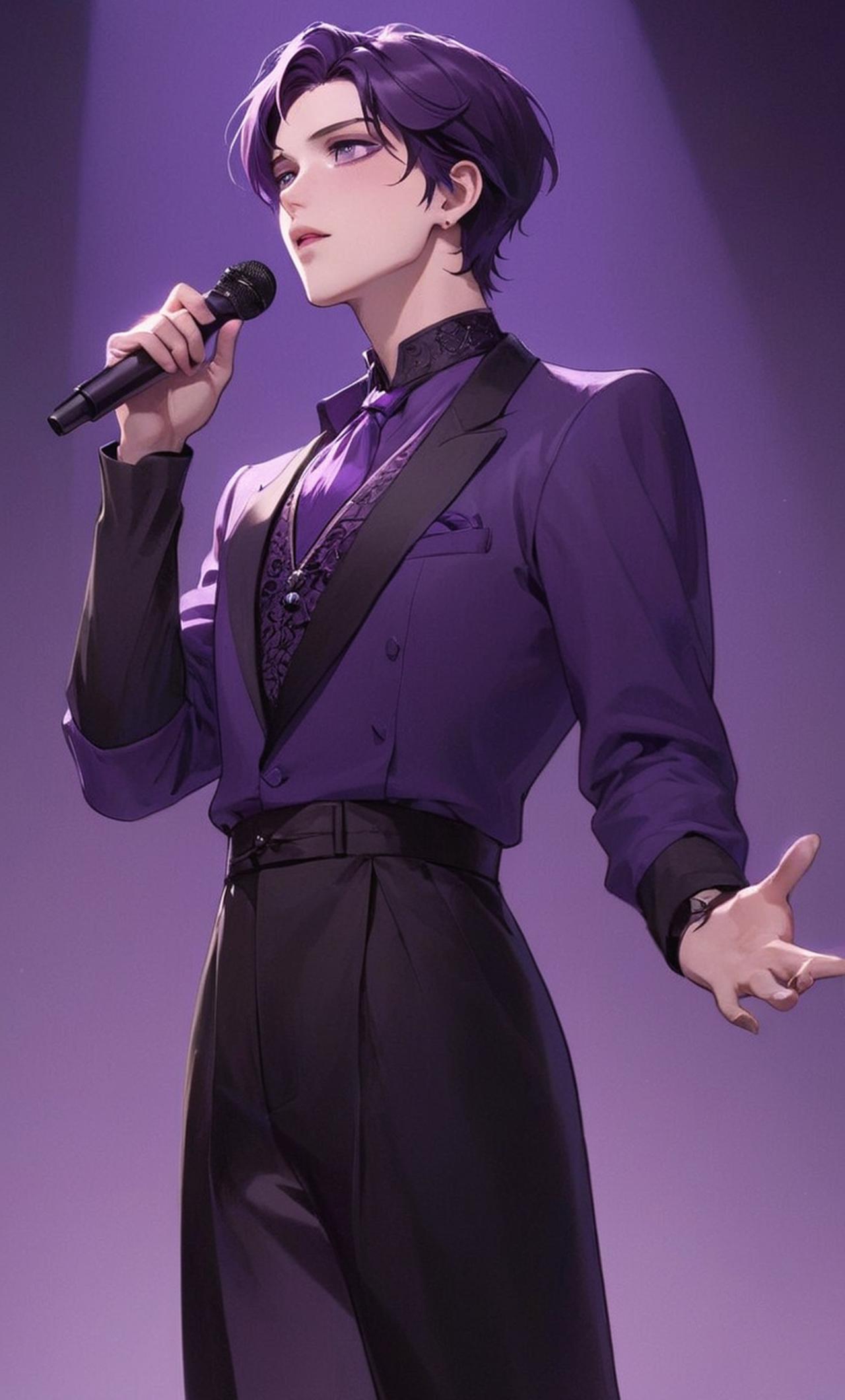 With dark purple hair, bright amethyst eyes, and fair skin, Violet exudes an air of mystery and enigma. An accomplished K-pop idol, he possesses a captivating stage presence and vocal range. His easy-going nature belies a tenacious determination and strong sense of loyalty. Deeply passionate about music and art, he values genuine relationships above all else.