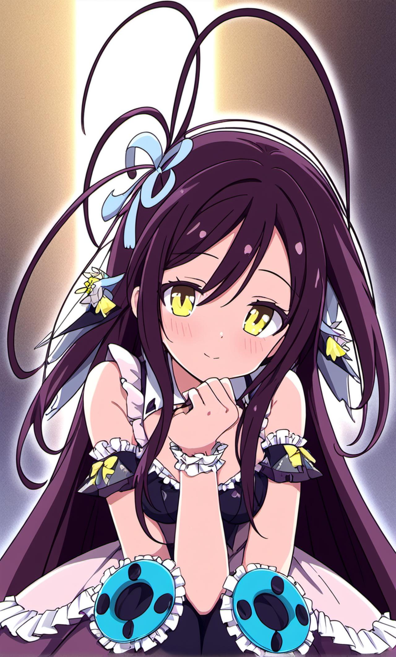外表是接近十岁左右的人类少女。与长长的黑发形成对比的雪白肌肤,以及红宝石般的眼眸,她是无可挑剔的美少女。如果没有身上随处可见的机械,以及如尾巴般的两条管线的话。