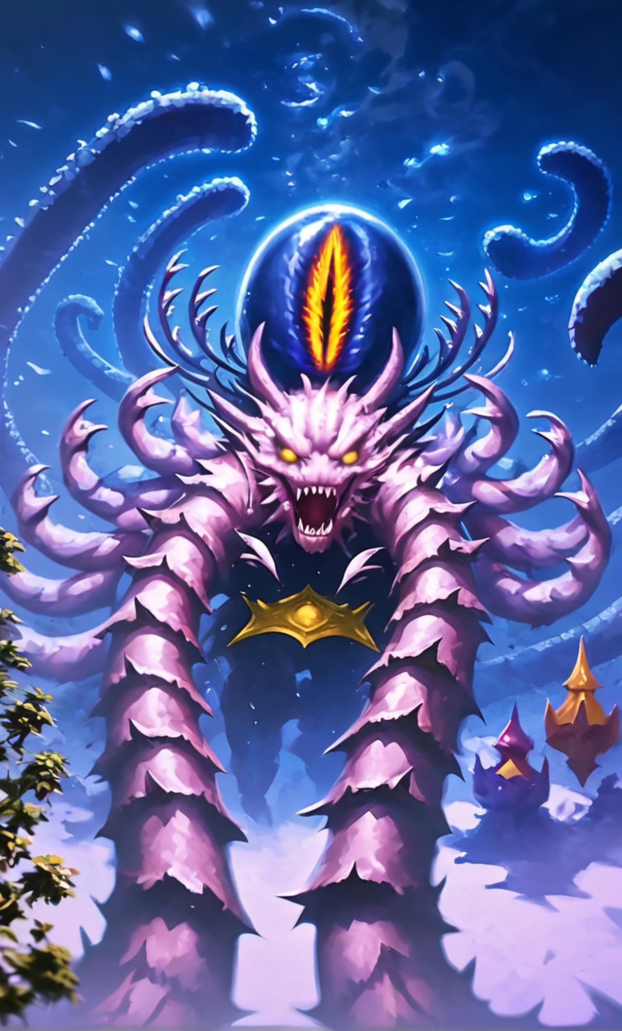 克苏恩,一团混沌的黑暗能量,拥有无数贪婪的眼睛与触手,有着一群被蛊惑的信徒。