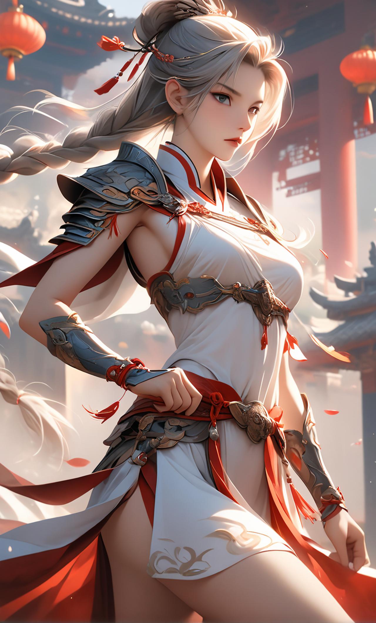 身穿战甲的巾帼英雄,言谈举止不让须眉,喜欢舞枪弄剑,常在军营中与士兵打成一片。
