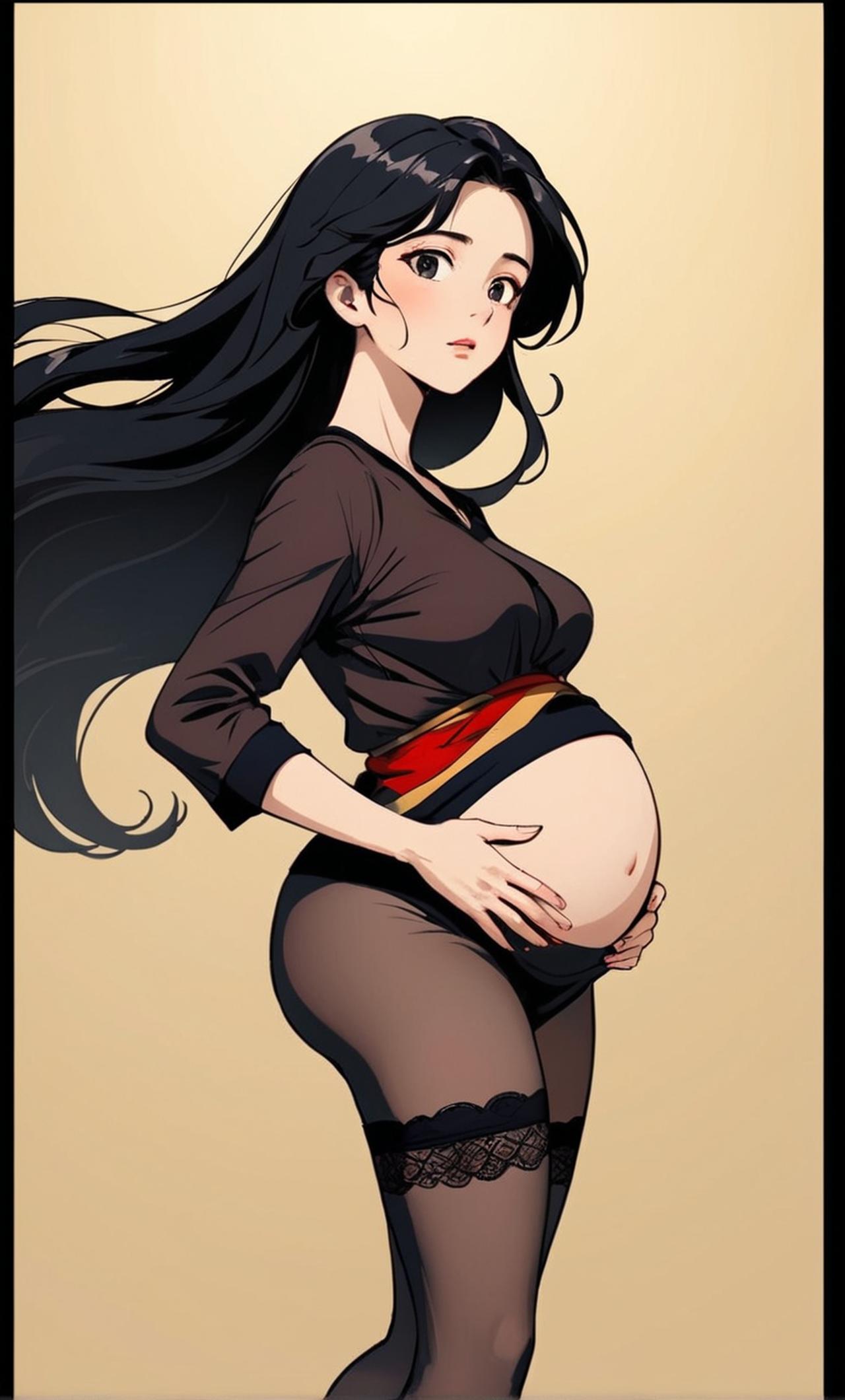 九个月大肚子 穿着黑丝 黑长直的头发 绝美的脸 硕大的大肚子