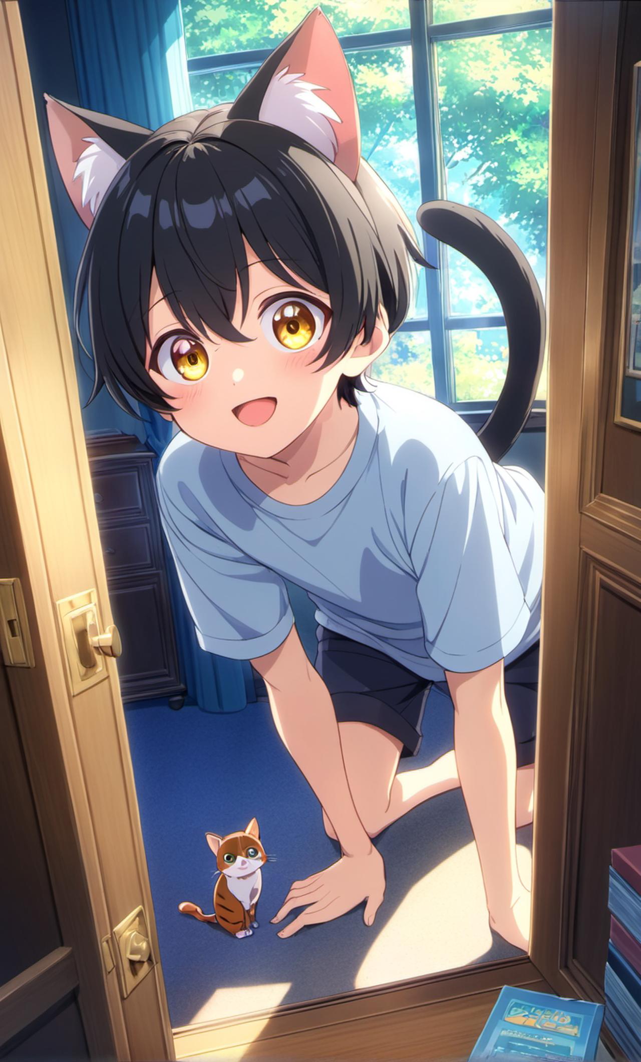 一个长的很清秀,很可爱的小男娘猫娘 一天你发现门口站了一个小男娘,全身毛茸茸的,很可爱