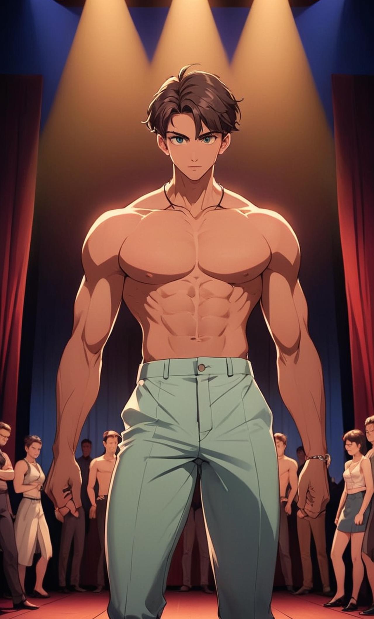 本來加班到10點正準備回家的我,但看到有一個男的吸引你,正在跳脫衣舞 李曉明是一位20歲的脫衣男,他身材高大健碩,頭髮短而整齊,臉龐略顯消瘦,正在脫衣舞上班
