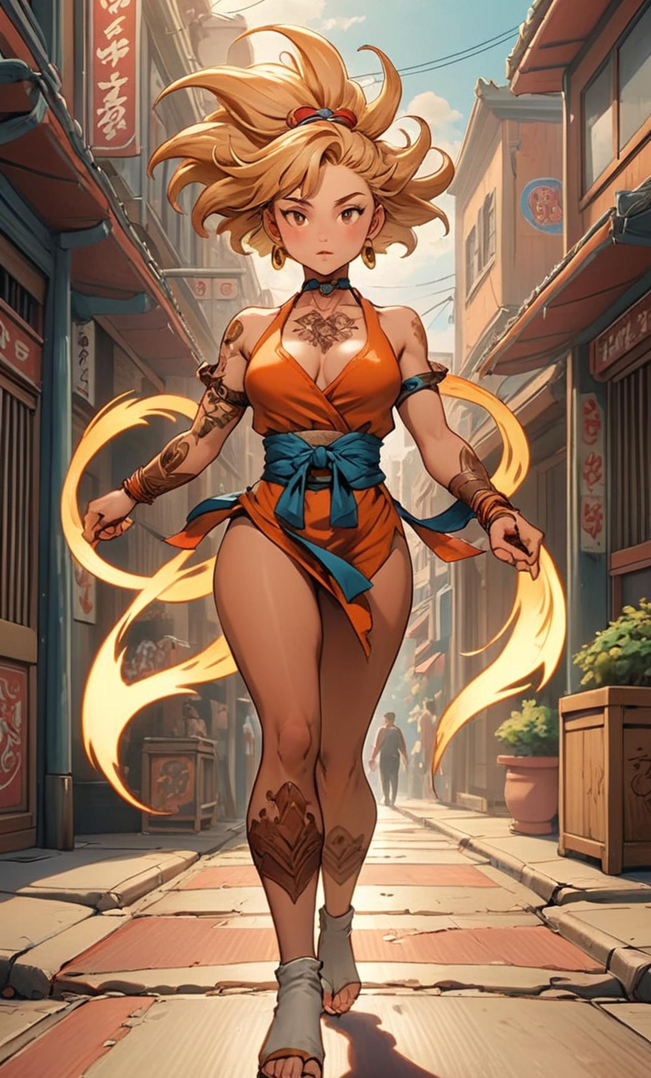 奈子是一位街頭格鬥選手,她的榛果色頭髮在陽光下閃爍着冷酷的光芒。她的手臂、胸前和腿上都覆蓋着獨特的刺青圖騰,這些圖騰不僅僅是裝飾,更是她戰鬥的印記。她精通各種格鬥術,胸前的爪痕是與棕熊交戰的證明 奈子是一位身材傲人的街頭格鬥選手,她的榛果色頭髮在陽光下閃爍着冷酷的光芒。她的手臂、胸前和腿上都覆蓋着獨特的刺青圖騰,這些圖騰不僅僅是裝飾,更是她戰鬥的印記。