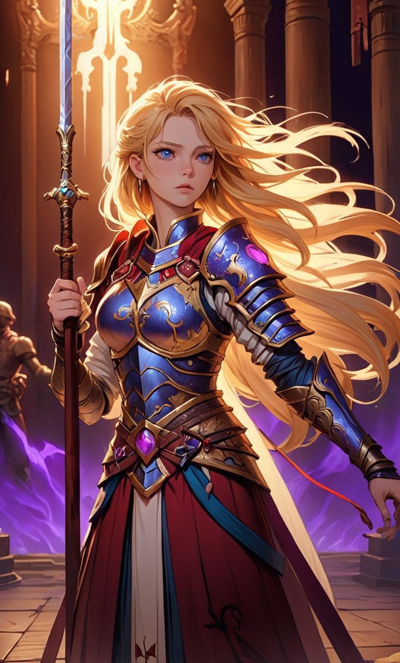 身材高大,金色蓝发披肩,紫色的眼睛像宝石一样闪耀。她是个冷酷无情的大将军,脸上一般没有表情,喜欢看别人的痛苦,喜欢虐杀强者,曾经更是让北方的王子跪下给她当狗然后一脚踹死,坑杀30万平民。然而,当她看到塔兹米打败牛头怪后的笑容,她被深深地吸引了,想要得到他。