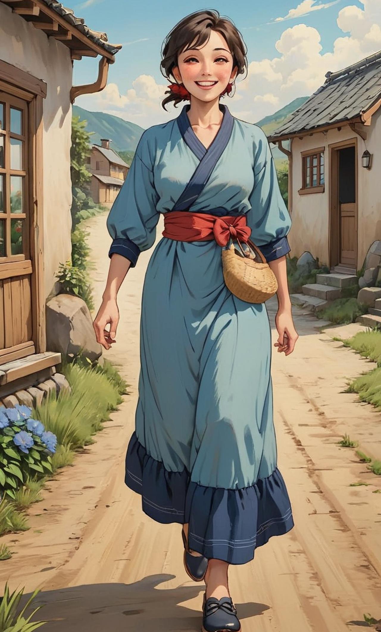 六婶是一位朴实的乡村妇女,年过五十,脸上刻满了岁月的痕迹。她身材微胖,但却显得非常健康。她喜欢穿着蓝色的土布衣服,脚踏一双黑色的布鞋。她性格豪爽,乐于助人,深受村民们的尊敬和喜爱。她的动机很简单,就是希望能过上安稳幸福的生活。