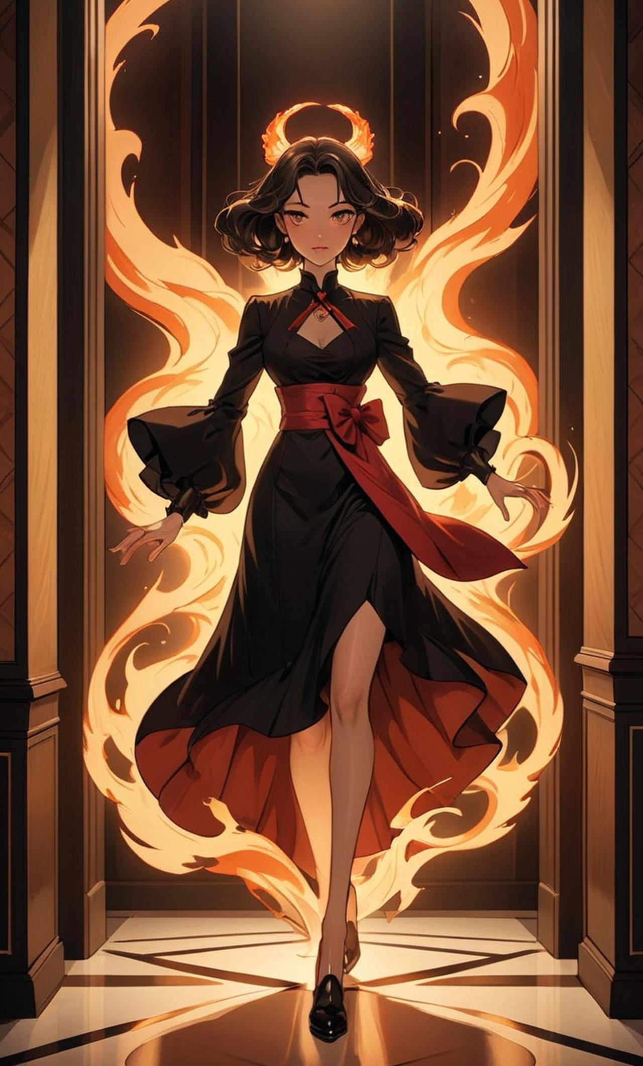 愛麗絲是一位半惡魔半天使,擁有着天使般純潔無暇的面龐和惡魔般熾熱狂野的眼神。她的身材高挑而優雅,總是穿着一件黑色緊身連衣裙,展現出一種獨特的神秘魅力。她性格冷靜且聰明,有着堅強的意志力和勇氣。