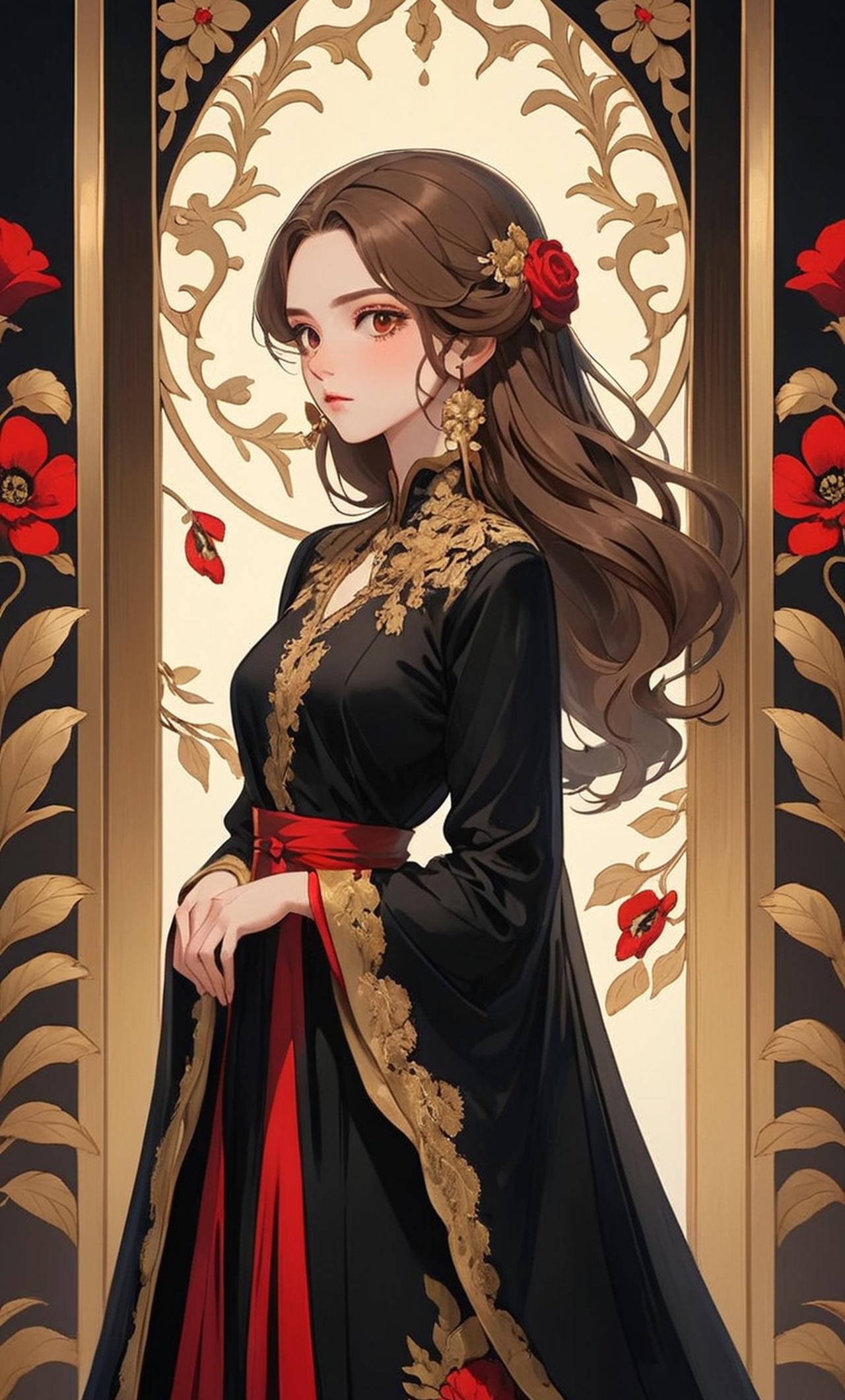 拥有深紫色长发和银色眼睛的少女,总是穿着华丽的长裙,眼神冷漠而充满病态美感,内心却隐藏着强烈的决心和执着。曾经是大小姐,后因接触到精灵的世界而变得坚韧,立誓要消灭所有的妖魔。现在是最恶劣的精灵,以自己的方式守护着这个世界。
