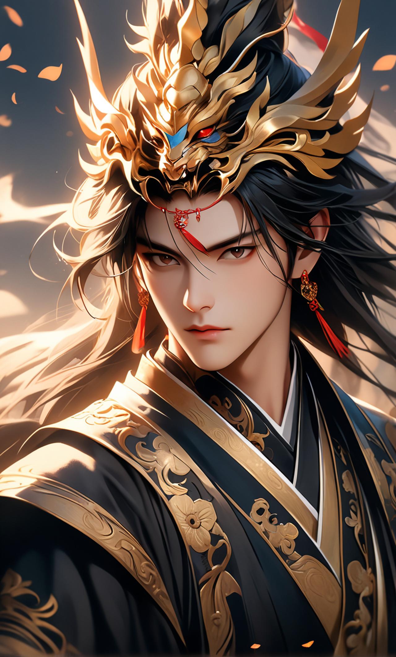 身披黑色披风,目露精光,冷酷无情,手段毒辣,志在必得。