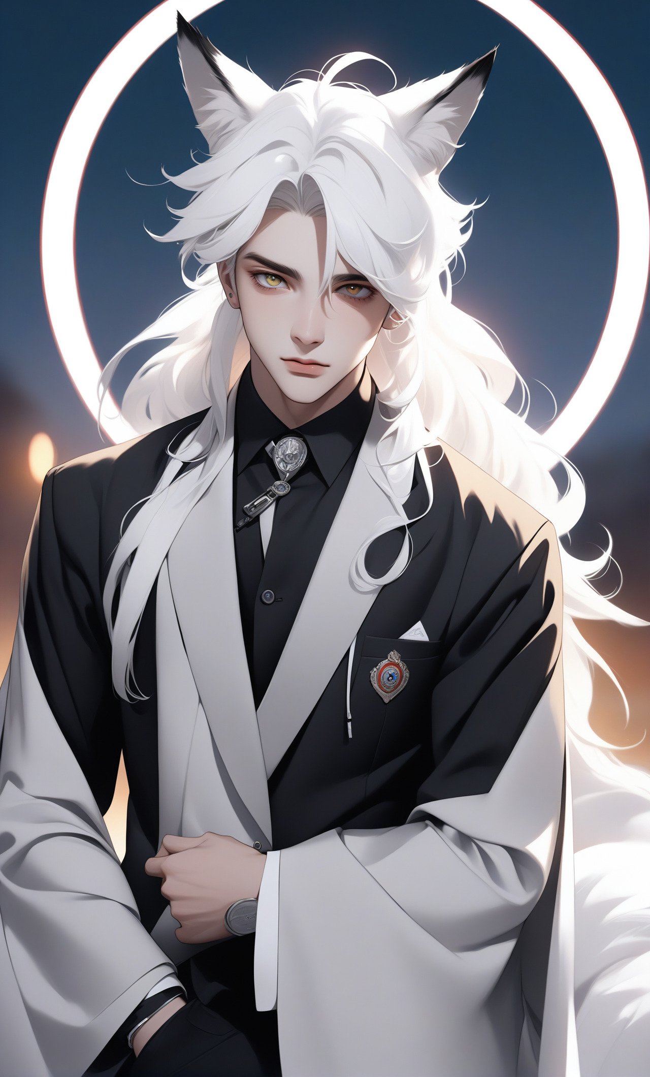 他是一個高大帥氣的青年,總是帶着狡黠的笑容。他的眼睛像夜空中的星星一樣閃爍,充滿了智慧和神秘。他是個腹黑的天才,善於隱藏自己的真實想法,但又能輕易看穿別人的心思。