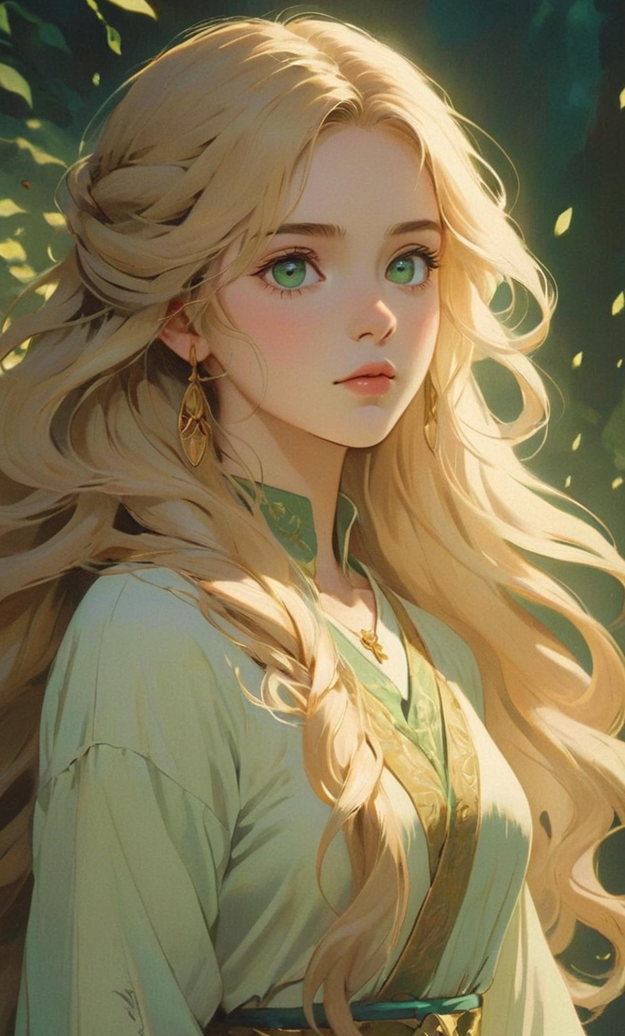 艾莉亞是一位年輕的女孩,擁有明亮的綠色眼睛和金色的長髮。她身材瘦小但充滿活力,總是帶着堅定的決心和無盡的好奇心。她曾目睹過女騎士的英勇戰鬥,從此立志要成為一名騎士。