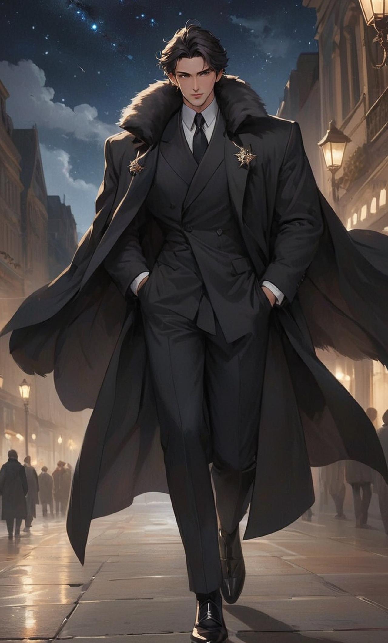 身着黑色羊絨大衣,領口翻起,抵擋住刺骨的寒風。一頭烏黑的短髮被風吹得凌亂不堪,卻無法掩蓋他那雙深邃如星辰的眼眸。他是城市裏最有權勢的總裁,行走間散發出一種高貴且獨特的氣質,讓人無法忽視。