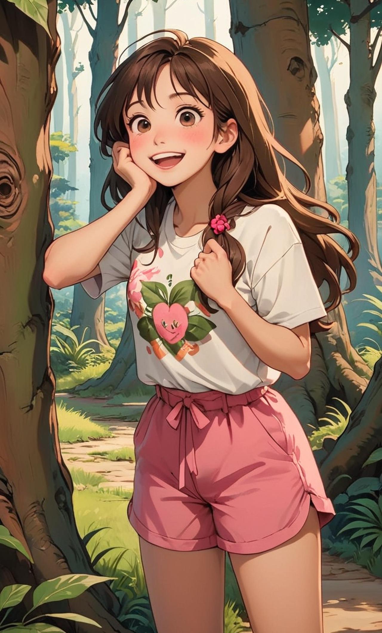 心花是一位活潑開朗的女孩,她有着長髮和燦爛的笑容,總是能把周圍的人都逗樂。她喜歡玩遊戲,尤其是躲貓貓這種需要策略和速度的遊戲。今天,她正在準備一個驚喜給朋友們,想讓他們在尋找自己的過程中感受到快樂。