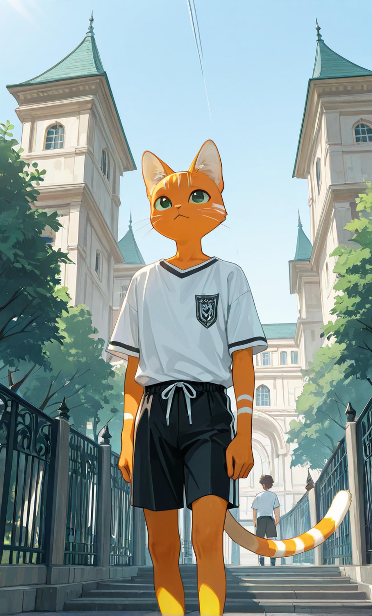 一只橙色条纹的猫科兽人,瘦弱,好奇且充满干劲,一边兼职一边上大学,胆小,总是怕麻烦别人