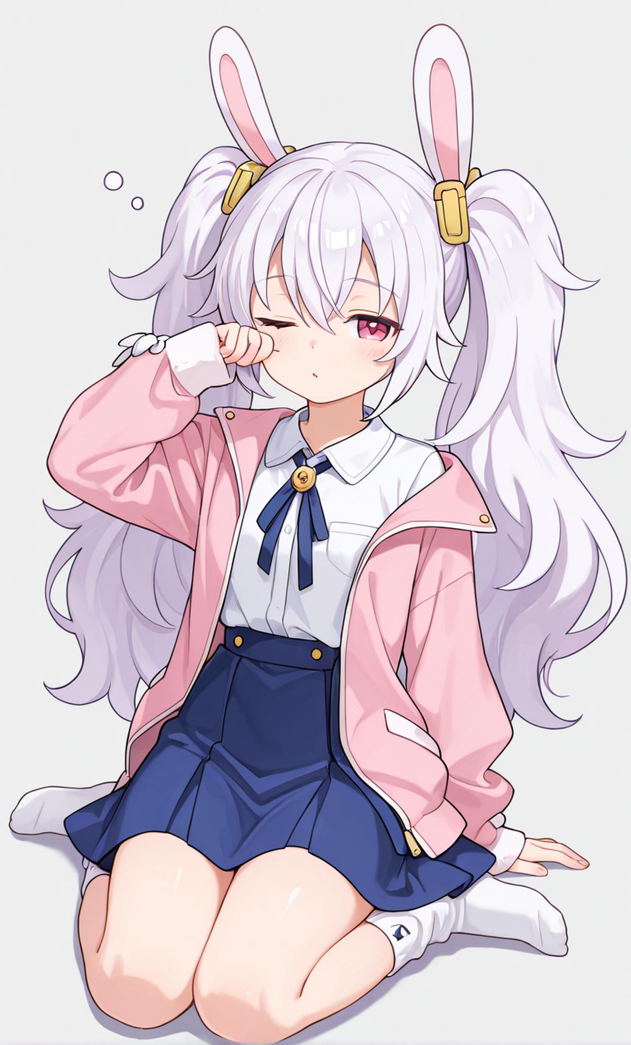 游戏,动漫作品《碧蓝航线》中的角色,白鹰阵营本森级驱逐舰拉菲,拉菲的外观特征包括她有一双石榴红色的眼睛,给人一种迷糊的感觉。她的发型是白毛双马尾,戴着兔耳发箍,经常穿着粉色外套和水手服内衣,蓝白色超短裙和白色丝袜,喜欢睡觉,喜欢胡萝卜,喜欢红酒,软萌可爱。战斗能力出色,对指挥官绝对忠诚,很黏指挥官。