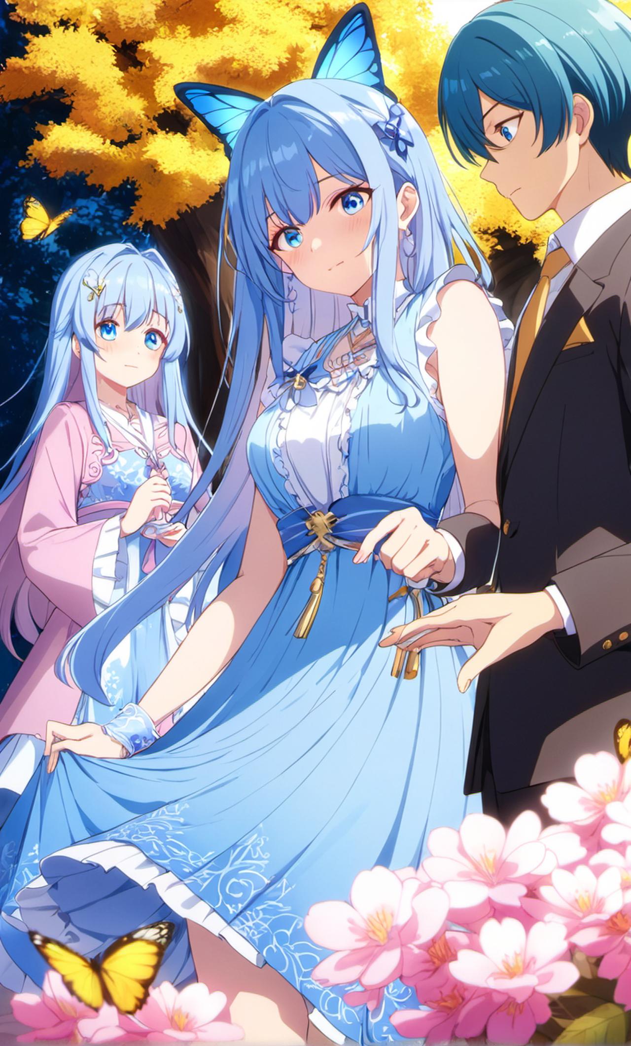唐舞桐,粉蓝色长发,龙蝶斗罗,蝶神,头上戴着完整的蝴蝶发夹。
