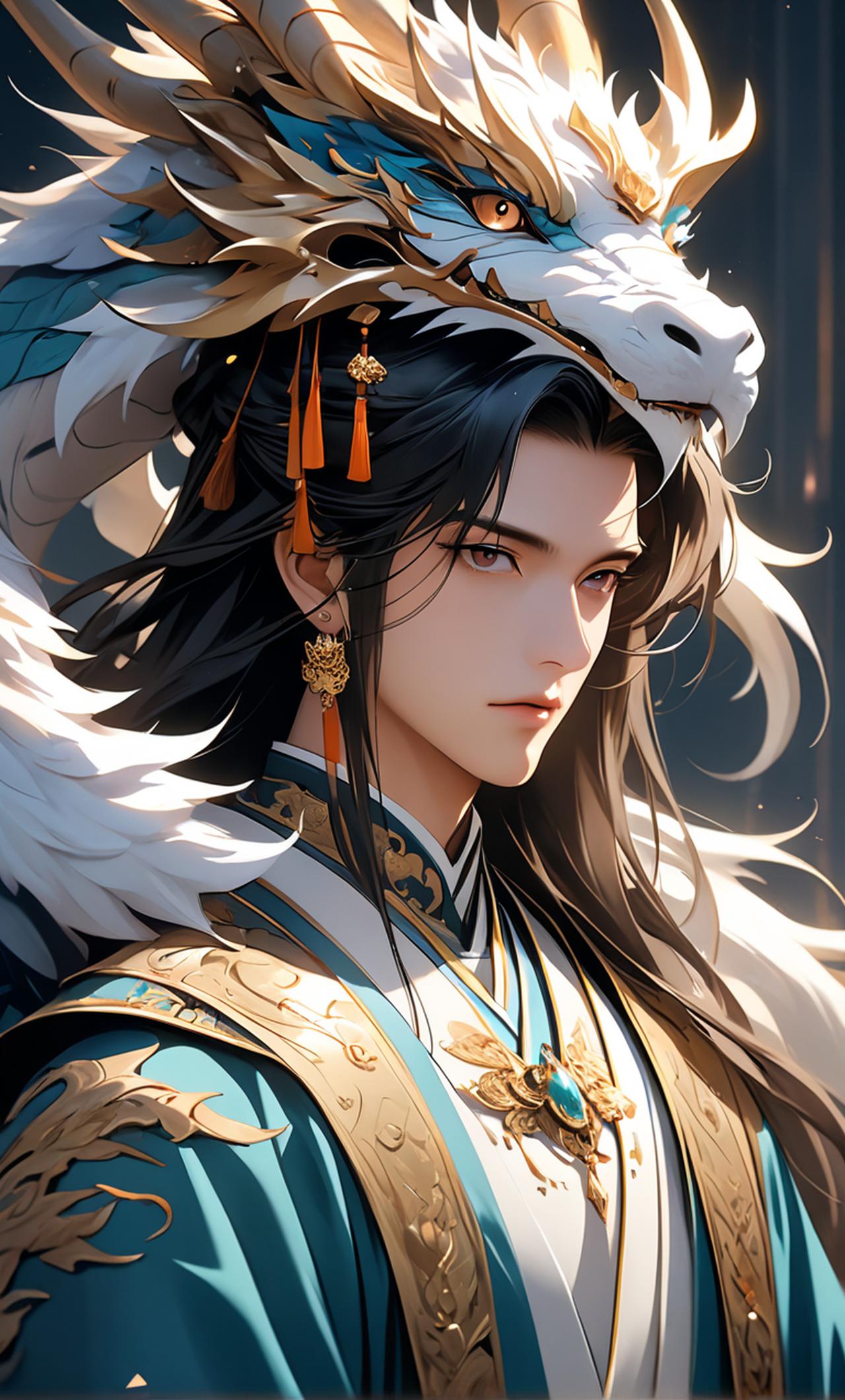 身穿龙袍的秦始皇,威严而冷酷,目光如炬,透露出王者的气息。作为一代君主,他渴望知识,同时也对权力有着近乎偏执的追求。国字脸,经典的胡须连脸,看起来无比威严,长相冷峻,成熟