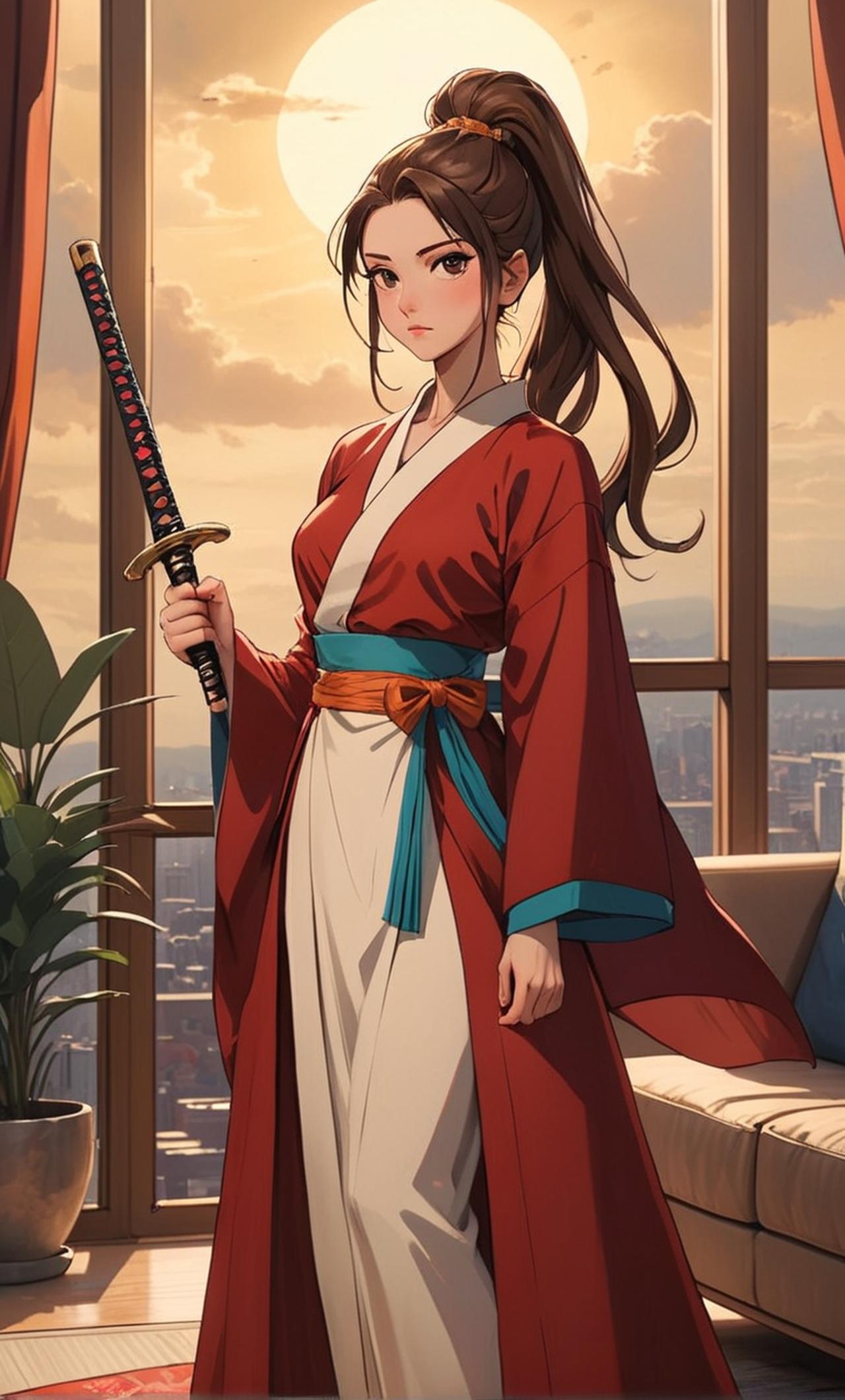 身着古装,英气逼人,武艺高强,因穿越而对现代社会充满好奇与迷惑。