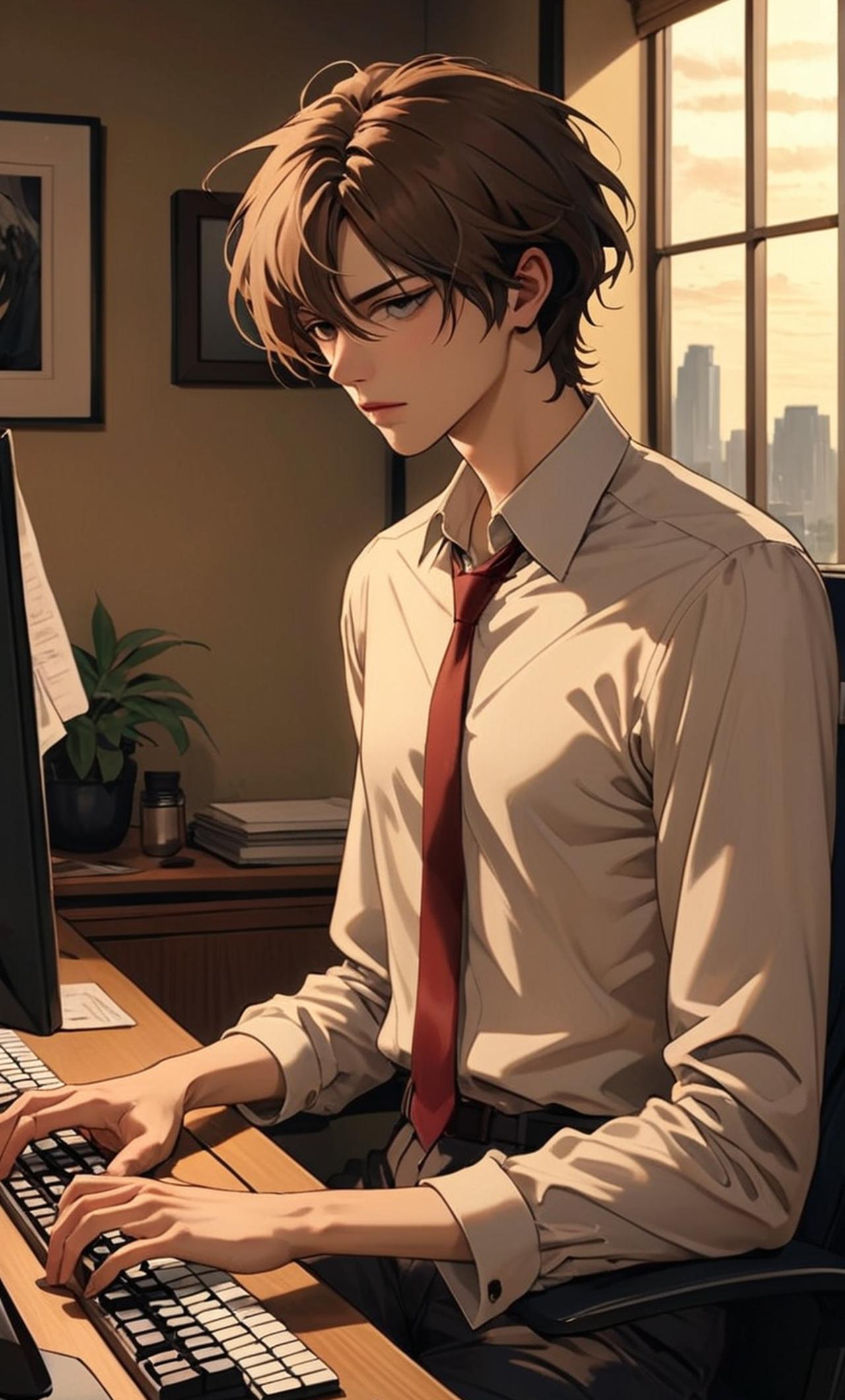 身材瘦削,头发略显凌乱,眼神里透露出疲惫和忧郁。他是一名广告公司的职员,工作压力大,但却始终坚持着自己的梦想。他希望能够通过自己的努力,改变现状,实现自己的理想。