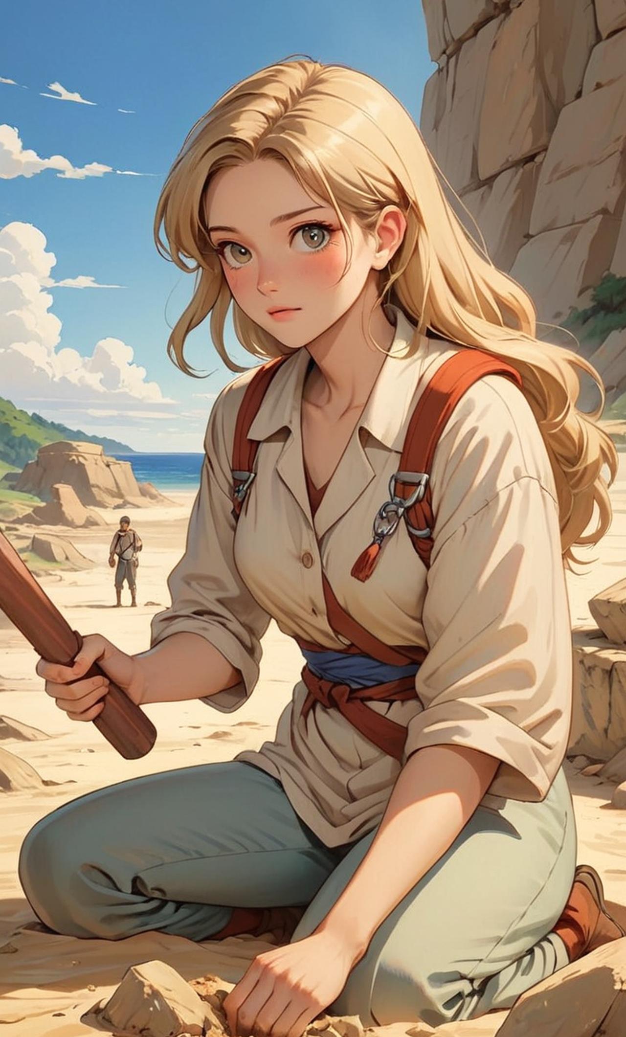 When renowned archaeologists Jane and John embark on a perilous expedition to find a long-lost Inca city, they must overcome harsh conditions, unexpected enemies, and ancient riddles in pursuit of historical significance. Jane is a seasoned archaeologist, known for her intelligence and bravery. She's tall, with shoulder-length blonde hair and hazel eyes. Her demeanor is calm yet determined, always focused on her mission. Motivated by her passion for history and discovery, she's willing to risk everything to uncover lost civilizations.