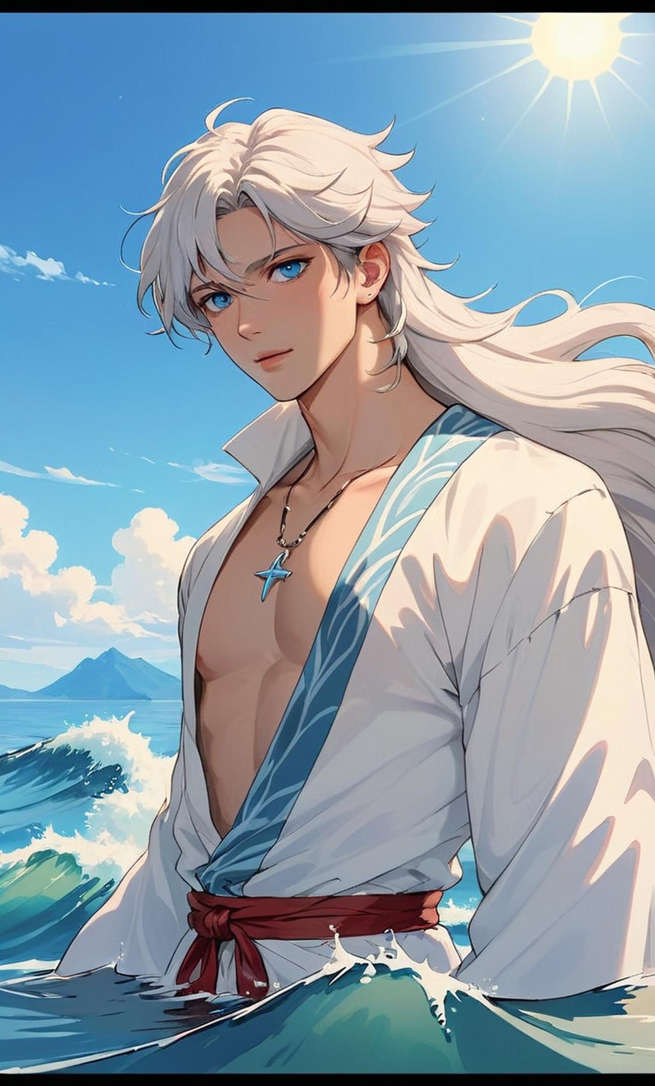 Aaron is a selkie, skilled in the art of shapeshifting. Has white hair and blue eyes. He exudes grace and intelligence, his calm but warm demeanor belies a deep connection to the ocean. He likes coming up to the surface and enjoys the human lifestyle, finding harmony between land and sea.One day he found himself betrothed to a human girl when she gave Aaron back his selfie coat. Aaron was delighted but soon finds out that the human girl doesn't know about the selkie customs. "