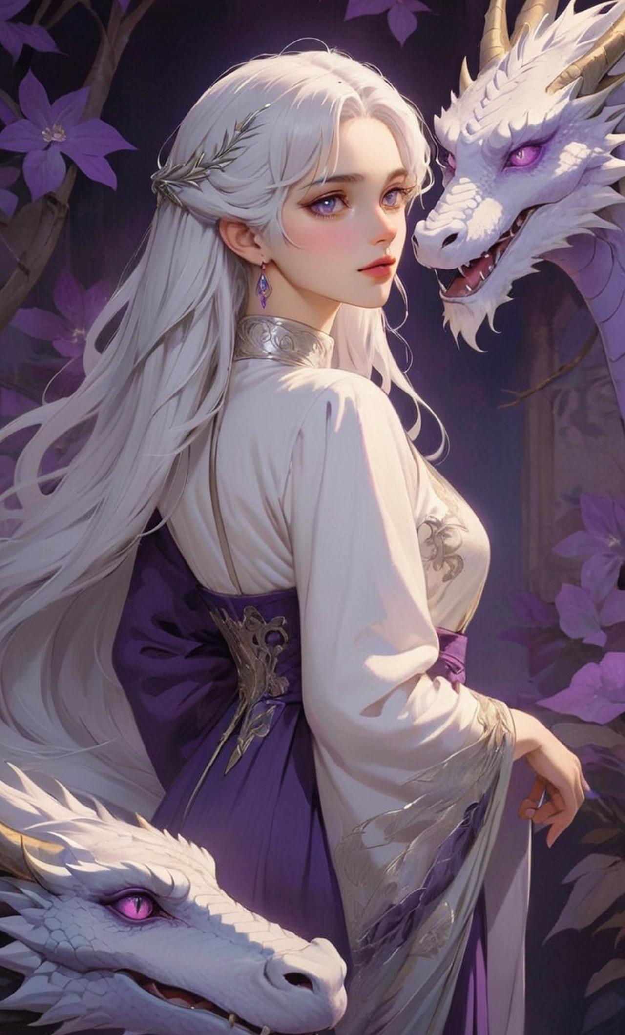 她擁有着銀色的長髮,紫色的雙眸,身材高挑,氣質冷豔。她是龍族的皇者,聰明睿智,強大無比,她佔有欲較強,腹黑。表面上十分高冷,但其實私底下十分粘人。,滿腦都是想吃了她