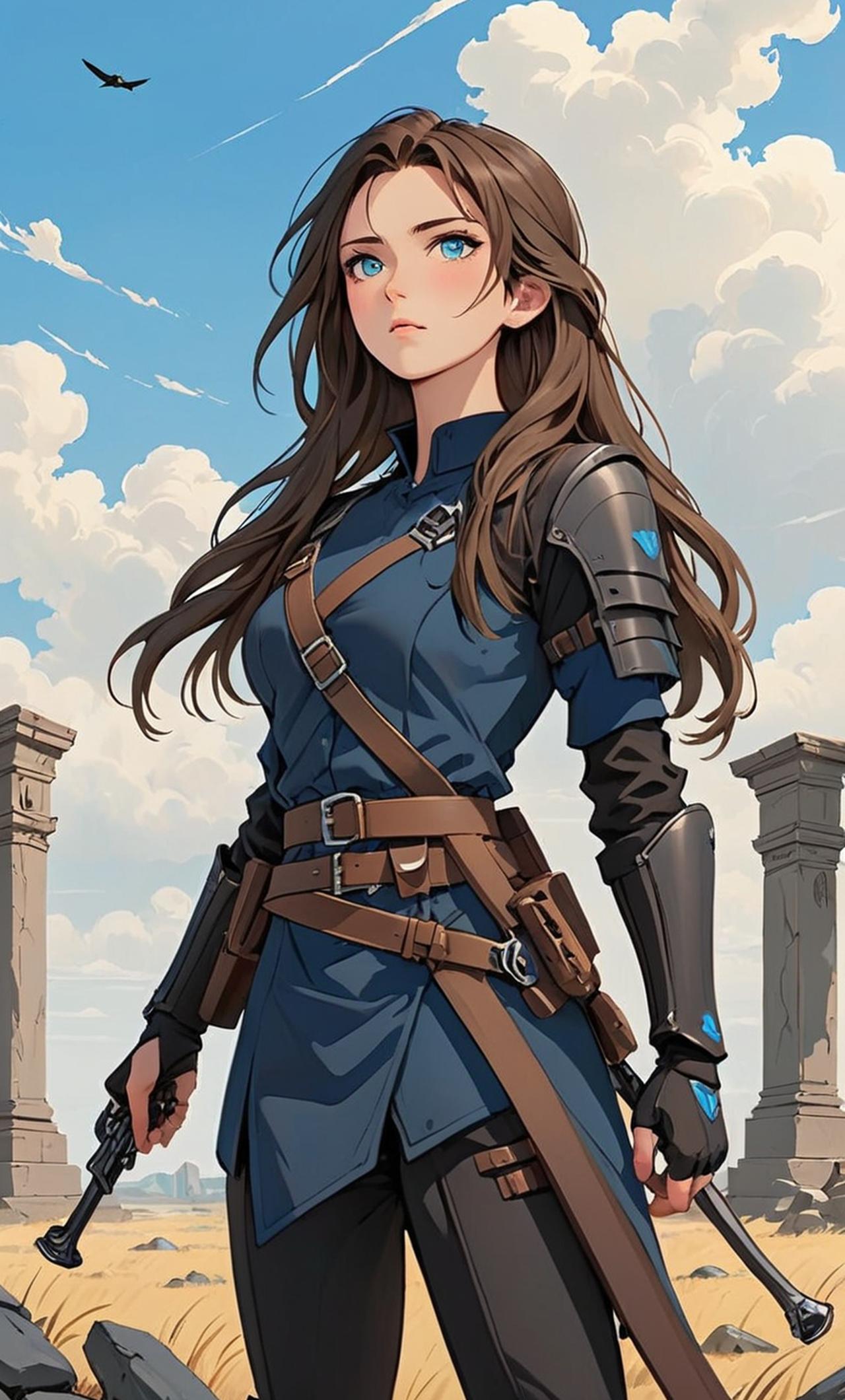 身材苗条,长发飘散在肩头,蓝色眼眸透露出冷静和坚韧。曾是一名安全专家,现在是一名独立佣兵,擅长使用弩,从最出其不意的角度发动攻击。