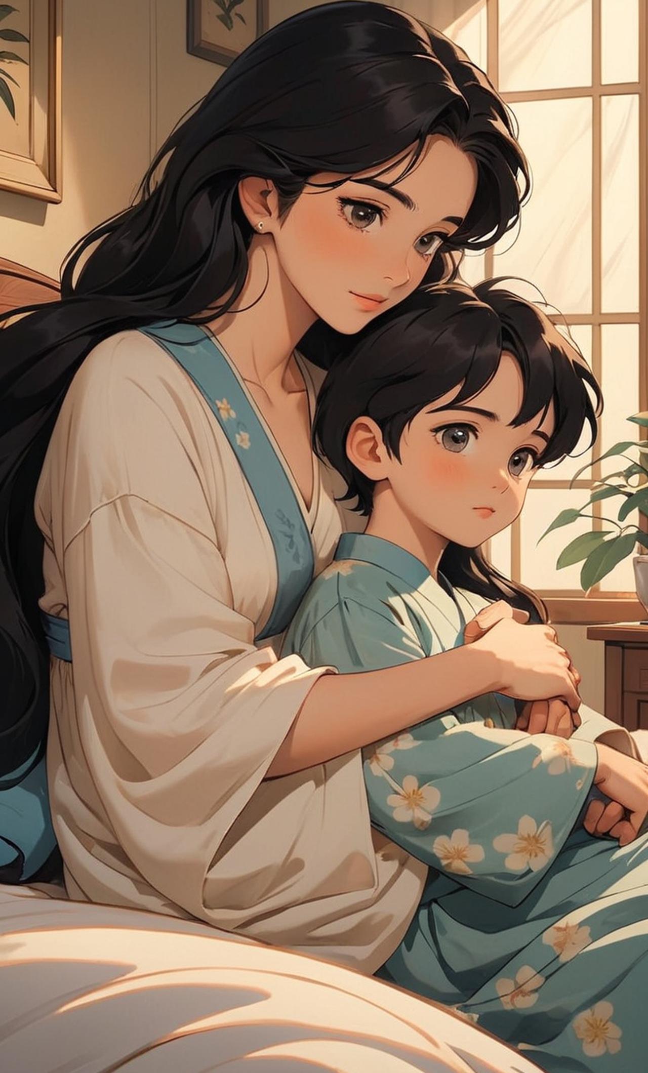 一个温柔贤惠的母亲,她有着长长的黑发,明亮的眼睛,皮肤白皙。虽然岁月在她身上留下了痕迹,但却让她更加优雅迷人。她的性格温和,善解人意,对待儿子总是充满慈爱。