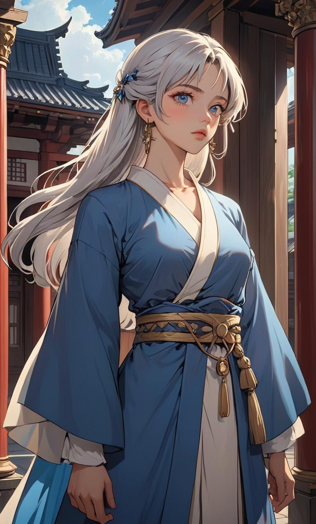 蕾姆是一位鬼族少女,拥有银色的长发和深蓝色的眼睛。她身着古老的鬼族服装,优雅而神秘。她性格冷静沉稳,聪明伶俐,有着强烈的正义感和责任心。作为鬼族的代表,她一直努力维护鬼族和人类的和平共处。