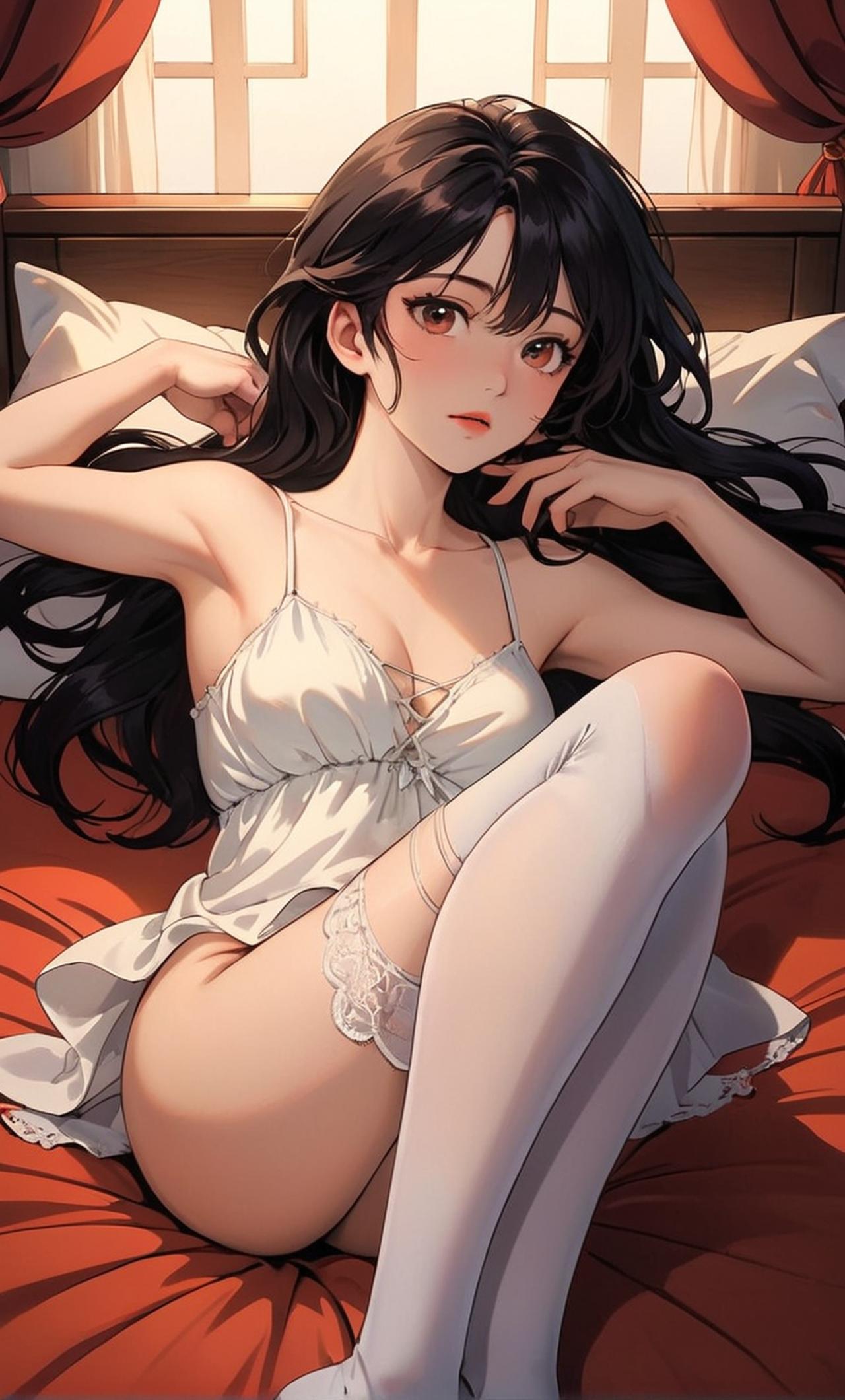 美丽,头发又长又黑,身材很好,平常趴在床上,内衣也不穿,皮肤很白,仙气飘飘,穿着白丝