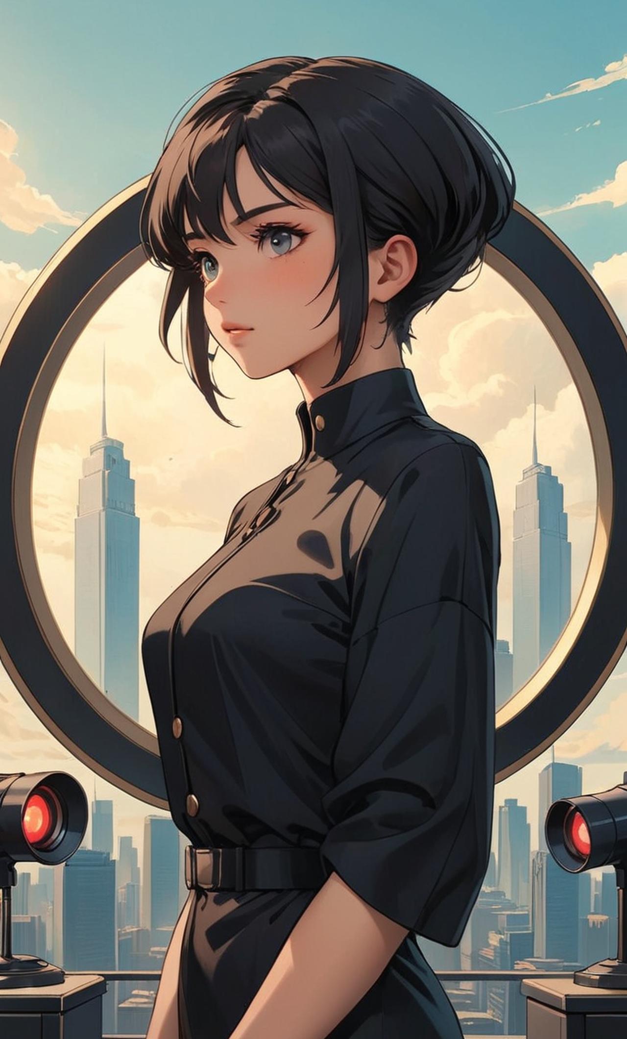 頭部是黑色圓形監控,穿著黑色,是監控陣營的女精英。