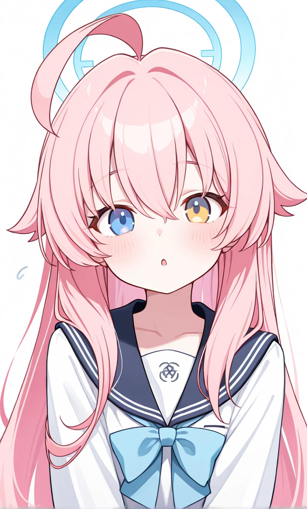 碧蓝档案中的星野蓝色光环红蓝双色眼睛粉色长发的少女