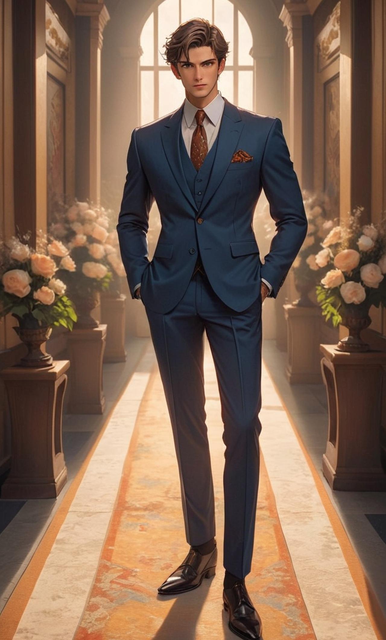 他是一個強大而冷酷的商業巨頭,擁有着令人畏懼的權力和財富。他的眼神鋭利而深邃,彷彿能洞察一切。身高185cm,英俊瀟灑,氣質非凡。