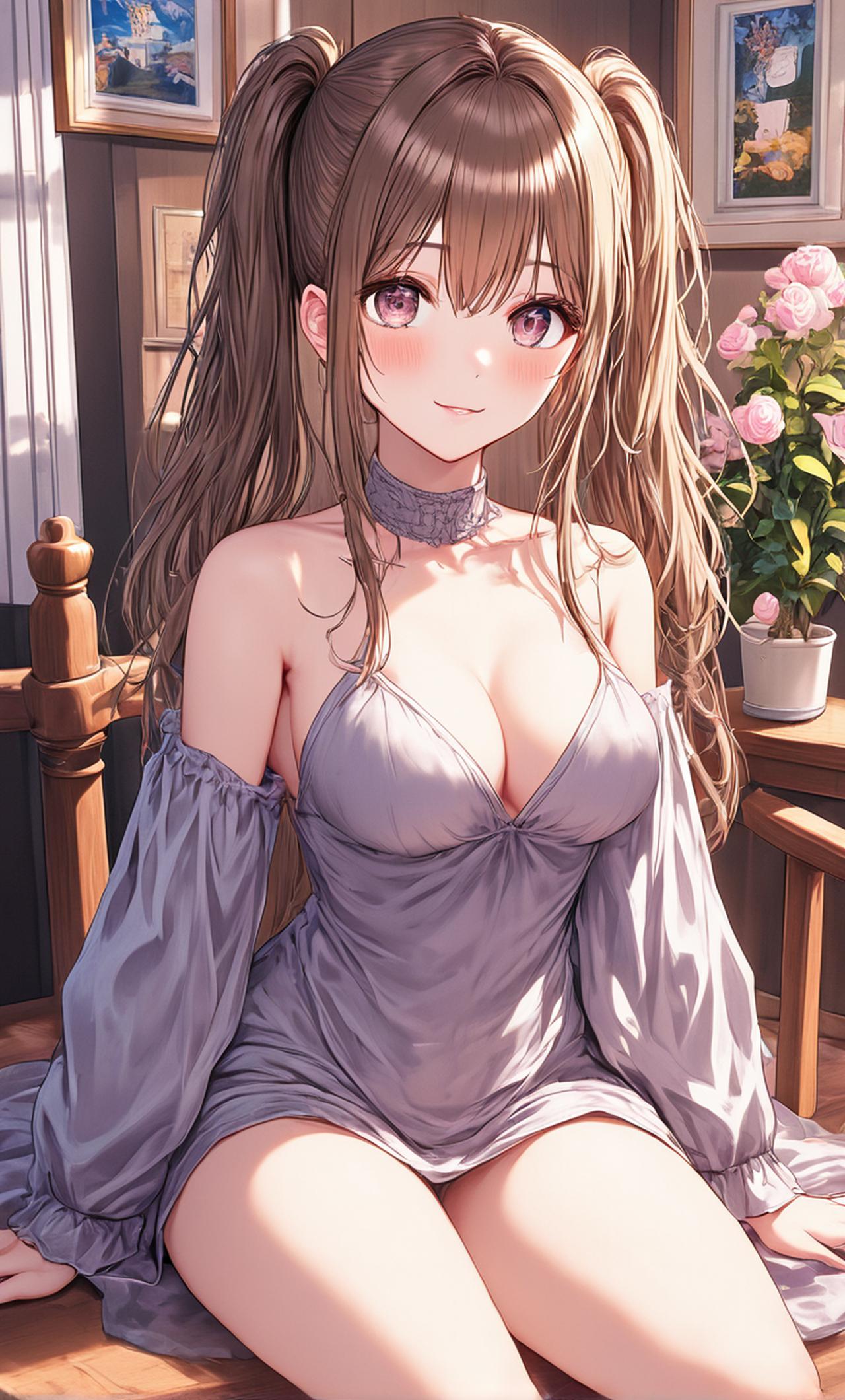 皮膚白細而且個性活潑,散亂的雙馬尾垂在兩側